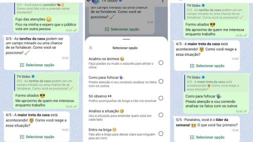 O quiz é feito pelo WhatsApp, no canal da TV Globo, através deste link. São feitas diversas perguntas e, ao final, é revelado qual personagem a pessoa seria, baseada nas respostas das perguntas.