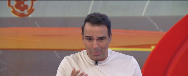 Ao mencionar "os Vips", Tadeu se enrolou com a palavra e fez um barulho de "pum". A cena não passou despercebida no X, antigo Twitter.