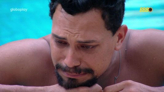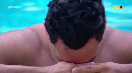 Após o papo, o brother se mostrou abalado e caiu no choro dentro da piscina.