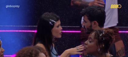 "Estava conversando ali, aí eu virei as costas e você estava dançando com ela [Eva]. Por que? Te trata como se nada tivesse acontecido, super de boa. E eu que cheguei pra conversar... não. Você entende?", iniciou a atriz.