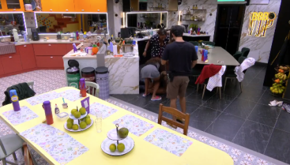 Thamiris, que faz dupla com Camilla, Aline, Vinícius, Mateus e Giovanna estavam no momento. A policial militar foi quem limpou a sujeira enquanto a carioca tomava banho.