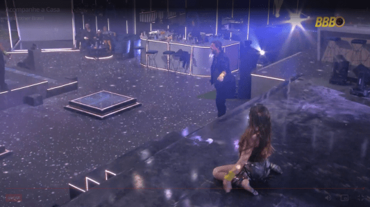 Pouco depois, no momento em que Raíssa fazia a coreografia da música, Edilberto mudou o semblante e disparou repetidamente. "Desce daí agora", gritou ele, que depois riu da situação e foi afastado por Arleane. Veja aqui.