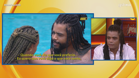 Trechos da discussão foram exibidos para ele analisar, e Gil do Vigor pontua que ele não deixava a ex-policial militar falar. Diogo diz que não costuma "atravessar" os outros, mas que estava ansioso para resolver logo a questão com ela.