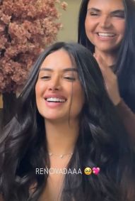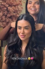 "Único tempinho que tive, corri aqui pra cuidar do cabelo", escreveu Jordana no vídeo. Em seguida, ela publicou um novo registro mostrando o resultado.