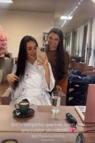 "Olha como meu cabelo estava, as pontinhas estavam me deixando agoniada. Encontrei a Day, maravilhosa, e ela vai cuidar de mim rapidinho porque tá muito corrido", disse.