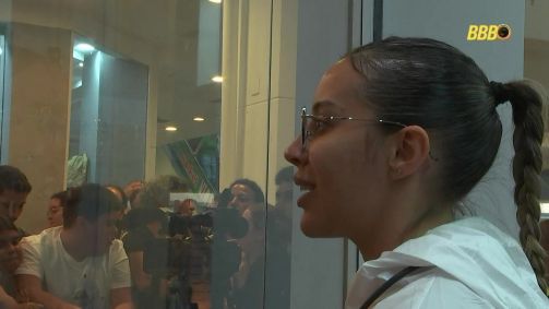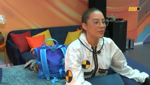 A sister está passando o dia em uma plataforma isolada no Via Parque Shopping, na Barra da Tijuca, no Rio de Janeiro, longe dos outros confinados. Por lá, ela tem recebido fofocas e informações privilegiadas do público externo.