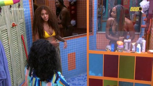 "Você é minha prioridade agora pra jogar no Paredão! Você não tava defendendo Camilla e Thamiris? Vai ser você agora", disparou Vilma. "Você votou nelas e quer pagar de boa moça. Ai olha, não voto em vocês...", rebateu Giovanna.