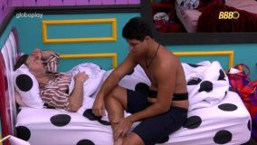 No Quarto Anos 50, Guilherme opinou sobre o voto de Diego em dona Vilma. "Vou ser sincero com você... Às vezes, tenho medo de expressar minha verdadeira opinião, porque você vai ficar sentido, e tenho que ver como eu vou falar também", diz.