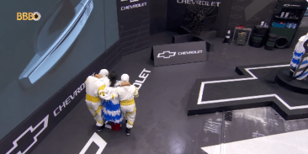 Ele reclamou de tontura, soltou o disco e vomitou. Depois, os dummies entraram para retirar o participante da disputa. "Desculpa, mãe. Desculpa, vó, por não ter conseguido", disse, chorando, ao voltar para casa.