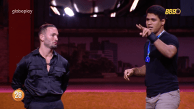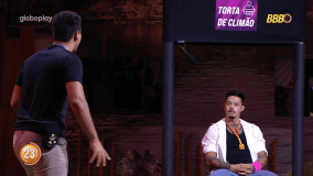"'A gente tentou mudar', mas era um nome que não deveria ter sido cogitado, porque um dia antes Diego tinha passado mal. No dia que amarrou, ele passou mal de novo", completa o brother, que tenta falar, mas é interrompido por Tadeu que alerta sobre a regra. "Tempo, Guilherme. Acabou seu tempo Guilherme! Você tem 1 minuto como todo mundo tem 1 minuto", grita o apresentador, que ouve um pedido de desculpas.