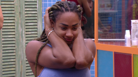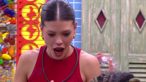 "Fica quieta", tenta disfarçar Vinícius, que é flagrado pelas câmeras do programa. "Mano, quando fico nervosa, começo a rir que nem o Diego", afirma Camilla.