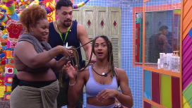 Por fim, Camilla assume o corte no cabelo de Aline sozinha e, na hora de desfazer as tranças, pede ajuda aos demais participantes.