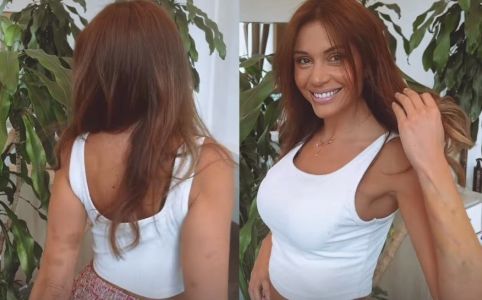 Nas imagens, ela mostra os cabelos e, ao dar uma volta, é possível ver as marcas nos braços da ex-BBB.