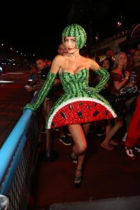 Deborah Secco inovou e foi vestida de melancia; outros famosos optaram por usar apenas o abadá de cada camarote