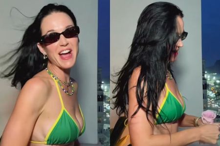 Katy Perry se despede do Brasil com biquiní ‘temático’ e homenageia fãs em sacada de hotel