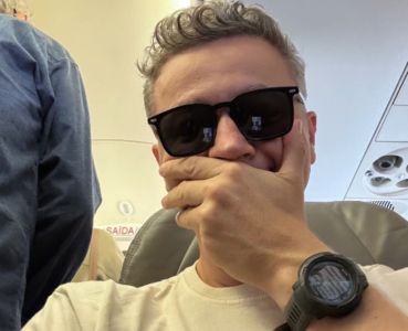 Segundo Lucas, ele entrou na aeronave com "super" celebridades: "No meu voo tá o Tony Ramos, Miguel Falabella e Nicole Bahls."
