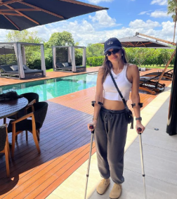 Em uma foto de muletas, Vera contou também sobre as restrições do tratamento. "Por um bom tempo, não vou poder tomar sol, não vou aproveitar o verão que eu tanto amo", desabafou.