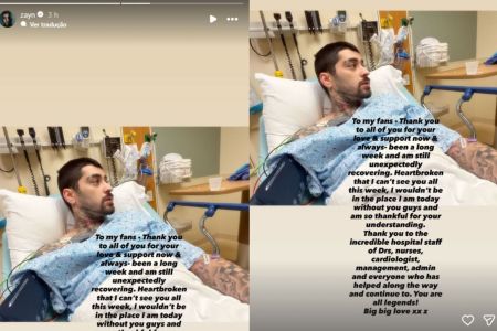 Na mensagem, Zayn contou que precisará passar por uma recuperação inesperada e descreveu a semana como difícil. “Tem sido uma semana longa e ainda estou me recuperando. Estou de coração partido por não poder ver todos vocês neste período. Não estaria onde estou hoje sem vocês e sou profundamente grato pela compreensão”, escreveu.