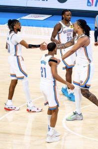 O Oklahoma City Thunder abriu a disputa dos playoffs da NBA com uma demonstração de força. A equipe, que terminou com a melhor campanha Conferência Oeste, atropelou o Memphis Grizzlies por 131 a 80, neste domingo (20), na Paycom Center, em Oklahoma, pelo primeiro jogo da primeira rodada dos playoffs da liga.