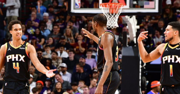 Jogadores do Phoenix Suns em partida da NBA • Reprodução/X/Suns