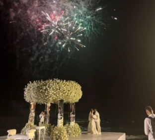 O casamento do craque do Tricolor das Laranjeiras foi celebrado em frente ao mar, com direito a até mesmo show de fogos de artifício. Depois, o casal, parentes e amigos aproveitaram uma luxuosa festa.