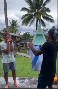 Surfista Tahurai Henry se emocionou com presente e cena viralizou nas redes sociais