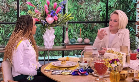Apresentadora se emocionou após ouvir a ginasta falar sobre sua relação com a adversária Simone Biles
