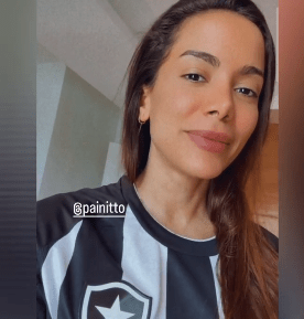 Nos stories do Instagram, Anitta contou que vestiu o uniforme do time para atender a um pedido antigo do pai. "Hoje vou realizar o sonho do meu pai de gravar algum conteúdo com a camisa do Botafogo. Ele vive me infernizando com isso", brincou a cantora.