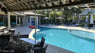 A casa tem 18 mil metros quadrados e conta com mais de dez ambientes. Entre eles piscina, campo de futebol, quadra de futevôlei, quadra de tênis, heliponto e dois salões de festas. Veja fotos do imóvel: