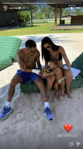 Envolvido em polêmicas sobre um suposto envolvimento com uma garota de programa, Neymar publicou fotos e vídeos com sua família na madrugada desta quarta-feira (19). Nos registros, ele aparece com a namorada, Bruna Biancardi, e com a filha do casal, Mavie, de um ano.