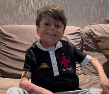 Pequeno Gui, de 8 anos, é portador de epidermólise bolhosa, uma doença genética rara, responsável por provocar bolhas na pele por causa de atritos e traumas. Ele viralizou nas redes com um vídeo reencontrando a mãe após ficar cerca de duas semanas em coma devido a uma pneumonia.