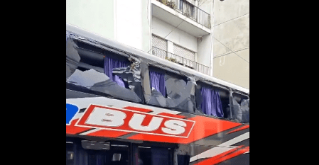 Imagens publicadas nas redes sociais mostram o ônibus usado pela delegação do Peñarol após um “acidente”. Durante as manobras de estacionamento na porta do hotel e Buenos Aires, todos os vidros de uma das laterais do veículo foram quebradas, e segundo os relatos, tudo aconteceu porque o ônibus esbarrou em galhos de árvores na chegada ao edifício.