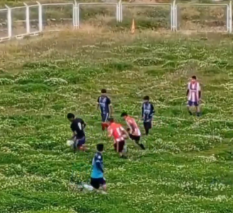 No vídeo, é possível ver o gramado com diversas falhas e áreas nas quais a grama está alta ou coberta por outras plantas. Em alguns momentos, a bola mal aparece na gravação. É perceptível também a dificuldade encontrada pelos jogadores para correr, dar passes e conduzir a bola.