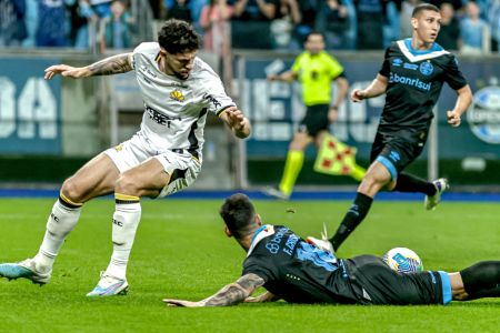 O Grêmio perdeu por 2 a 1 para o Criciúma na noite desta quarta-feira (25), na Arena, em Porto Alegre, no jogo atrasado da 5ª rodada do Campeonato Brasileiro. Com uma atuação abaixo do esperado novamente, o Tricolor saiu perdendo, buscou o empate e viu o Tigre garantir a vitória no final do jogo. Arthur Caíke e Ronald Lopes marcaram para os catarinenses, enquanto Villasanti descontou para o time gaúcho.