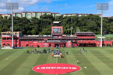 O Vitória vai a campo com Lucas Arcanjo; Cáceres, Neris, Lucas Halter, Jamerson; Ricardo Ryller, Gabriel Baralhas, Ronald, Matheuzinho e Wellington Rato; Janderson.