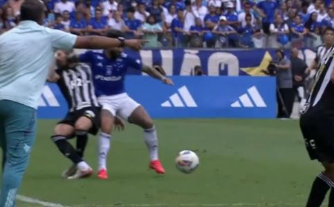 O lance aconteceu aos 26 minutos do primeiro tempo. O defensor atleticano tocou a bola e o cruzeirense chegou atrasado, deixando o braço na face do rival.