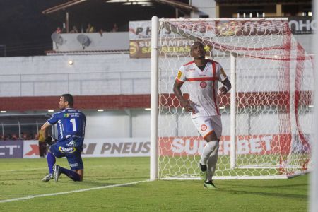 Aos 26 do primeiro tempo, Pedro Costa cruzou para a área e Igor Bahia abriu o placar para o Tombense. 1 a 0.