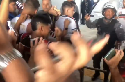 No sábado (21), antes do início do jogo entre Sport e Santa Cruz, centenas de torcedores ficaram aglomerados no portão de acesso ao estádio. Imagens que circularam nas redes sociais (ver vídeo acima) mostram os torcedores tratados com truculência pela PMPE.