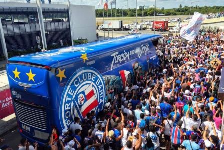 Bahia embarca para estreia na Libertadores com festa da torcida; veja imagens
