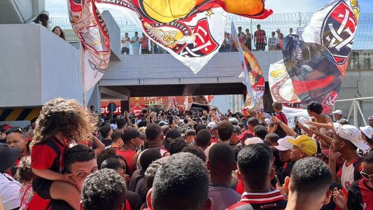 Durante o embarque da delegação, os rubro-negros presentes no local cantaram as principais músicas do clube e tiveram contato com os atletas.