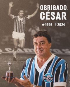 Nesta terça-feira (17), o Grêmio perdeu um dos grandes atletas de sua história. O ex-atacante César, campeão da Copa Libertadores e do Mundial de 1983 pelo Tricolor, morreu aos 68 anos. O atleta foi o autor do gol que deu o primeiro título da América ao clube gaúcho, que teve assistência de Renato Portaluppi.