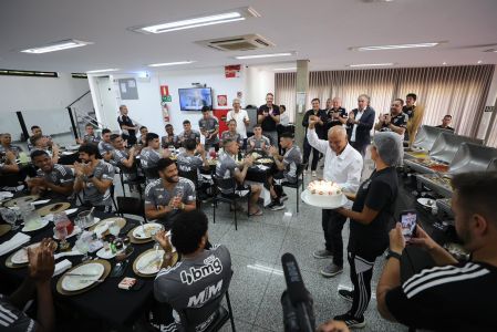 O aniversário de 67 anos do ex-atacante Reinaldo se tornou bastante especial. Na manhã desta quinta-feira (11), a convite do presidente Sérgio Coelho, o maior artilheiro da história do Atlético esteve na Cidade do Galo, ganhou um bolo e foi parabenizado por Hulk e companhia.