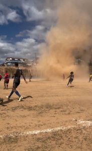 Uma partida de futebol amador em Ribeirão das Neves, Região Metropolitana de Belo Horizonte, foi interrompida de forma inusitada. Um “mini-tornado” se formou no campo de terra e assustou os jogadores e os demais presentes.