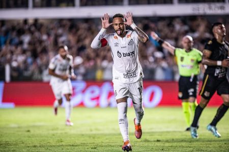 Neymar balançou as redes neste domingo (16), diante do Água Santa, pelo Campeonato Paulista