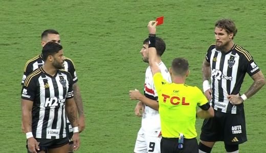 O atacante Calleri, do São Paulo, foi expulso neste domingo (6) após se envolver em um lance polêmico durante a partida contra o Atlético, válida pela segunda rodada do Campeonato Brasileiro, no estádio Mineirão.