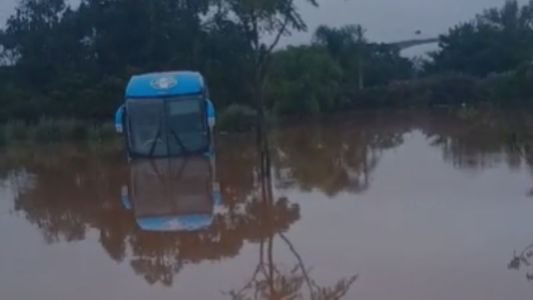 Em meio aos temporais que atingem o Rio Grande do Sul, o ônibus do Grêmio ficou quase totalmente encoberto pelas águas das chuvas neste sábado (4). As imagens, recebidas pela Itatiaia, foram gravadas dentro do CT Luiz Carvalho, em Porto Alegre.