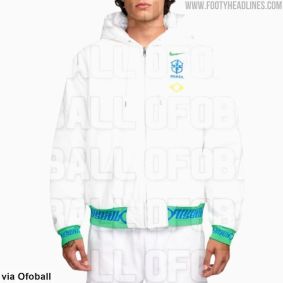 O Footy Headlines divulgou também as jaquetas da Seleção para 2025, estas já em fotos oficiais da Nike. Serão dois modelos, o primeiro deles com o amarelo predominante, detalhes em verde e azul, além do escrito 'Brasil' nos punhos.