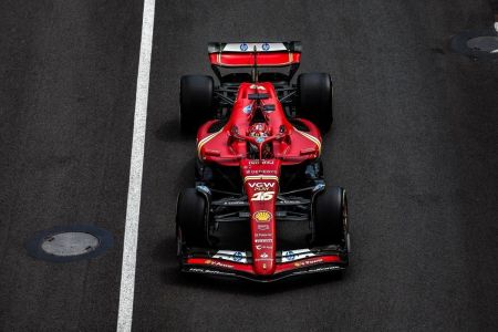 O treino livre logo ganhou mais um integrante. Charles Leclerc apostou nos compostos médios, fez uma boa volta com a sua Ferrari, e conseguiu ser mais rápido do que o rival da Red Bull.