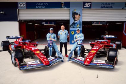 Além dos bastidores movimentados, o GP de Miami contará com duas equipes de visual novo. A Ferrari “abandonou” o tradicional carro completamente vermelho e adicionou detalhes em azul na pintura do SF24. Veja abaixo: