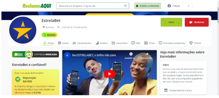 Tanto que a página Estrela Bet Reclame Aqui possui nota 9,2 e por este motivo a casa foi indicada ao prêmio RA1000 na categoria de melhor operadora do país.